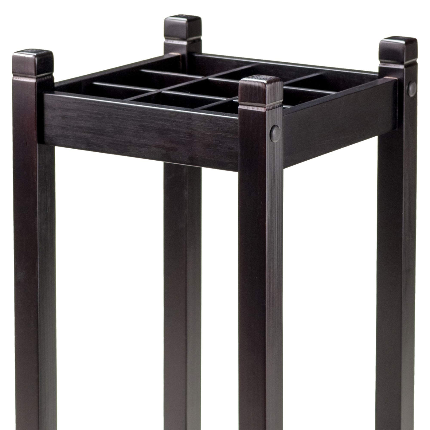 The Jana Umbrella Stand is an excellent addition to your entryway or mudroom with its open frame design made of solid wood with espresso finish which features a steel drip-pan to catch excess water and a grid to store up to 9 umbrellas.
