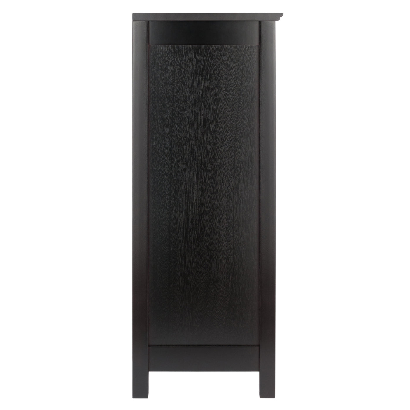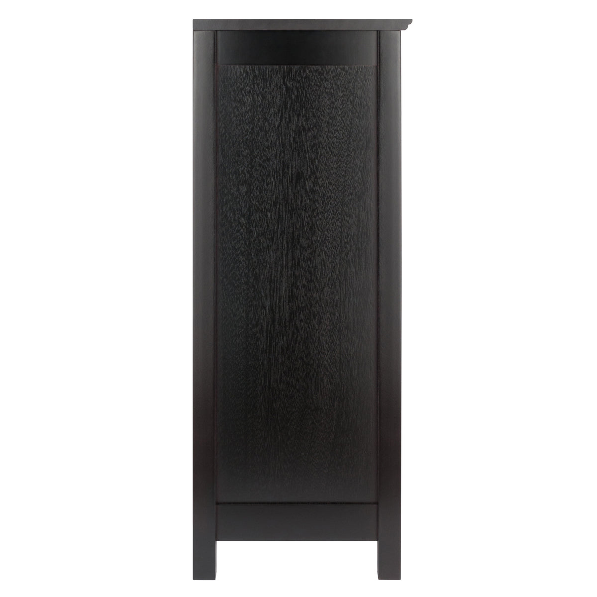 Enhance the appearance of any room with the simple yet attractive design of the Winsome Wood Terrace 4-Piece Storage Shelf Set. Spacious shelf perfect as a standalone bookcase in the home office or displaying family portraits and treasures in the living room. Finished in a rich espresso and made of solid and composite wood for long-lasting durability. The set of baskets are woven in durable flat polypropylene in a chocolate finish and have two cut out handles, one on each end, for carrying purposes. Prompt up and these baskets measure 10.24”W x 11.02”D bringing charm and style. When not in use, they fold for easy storage taking up almost no space. This set is shipped in two boxes. The shelf will ship separately and will include the hardware necessary for assembly. Replacement parts can be requested directly to the manufacturer within 60 days from date of purchase.