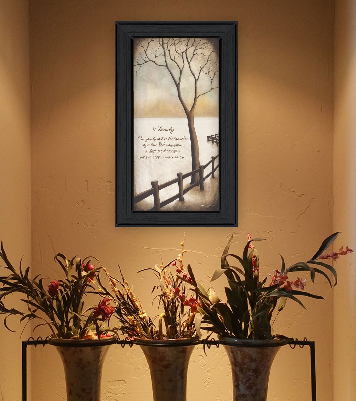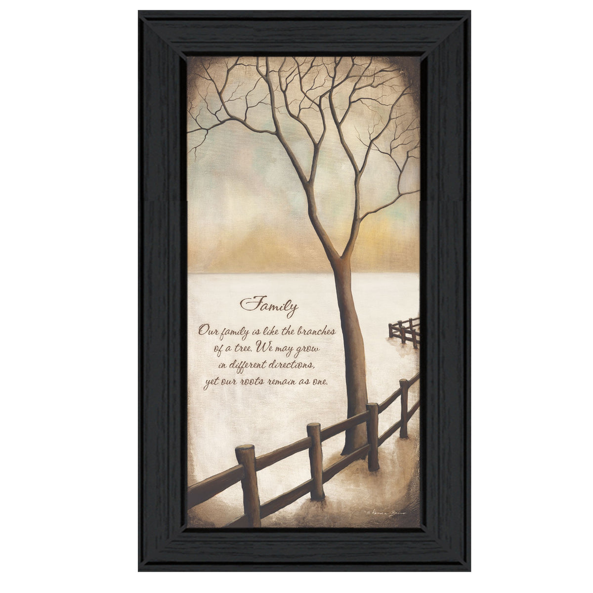 The winter tree family inspirational black framed print wall art is the perfect decorative accessory for your home. This print is a visual artistic expression that allows you to decorate your space in reproduced for you on paper, this hanging decorative accent will be a trendy and fashionable way to dress your walls. Adding this hanging wall art to your space to make your room feel more finished and attractive. Instantly liven up your space with this art that brings color dimension to your 2. ' H x 12 ' W x 1' D
