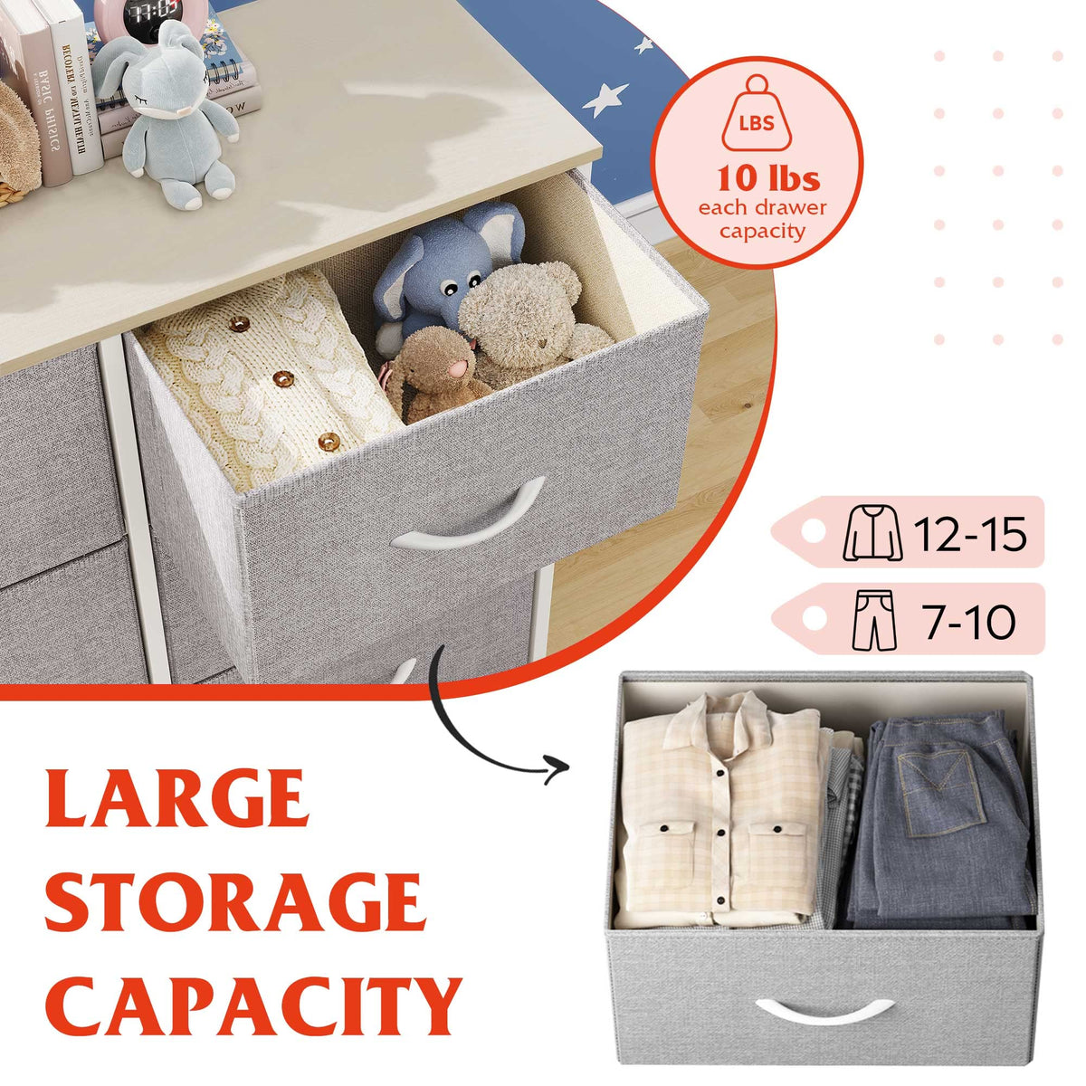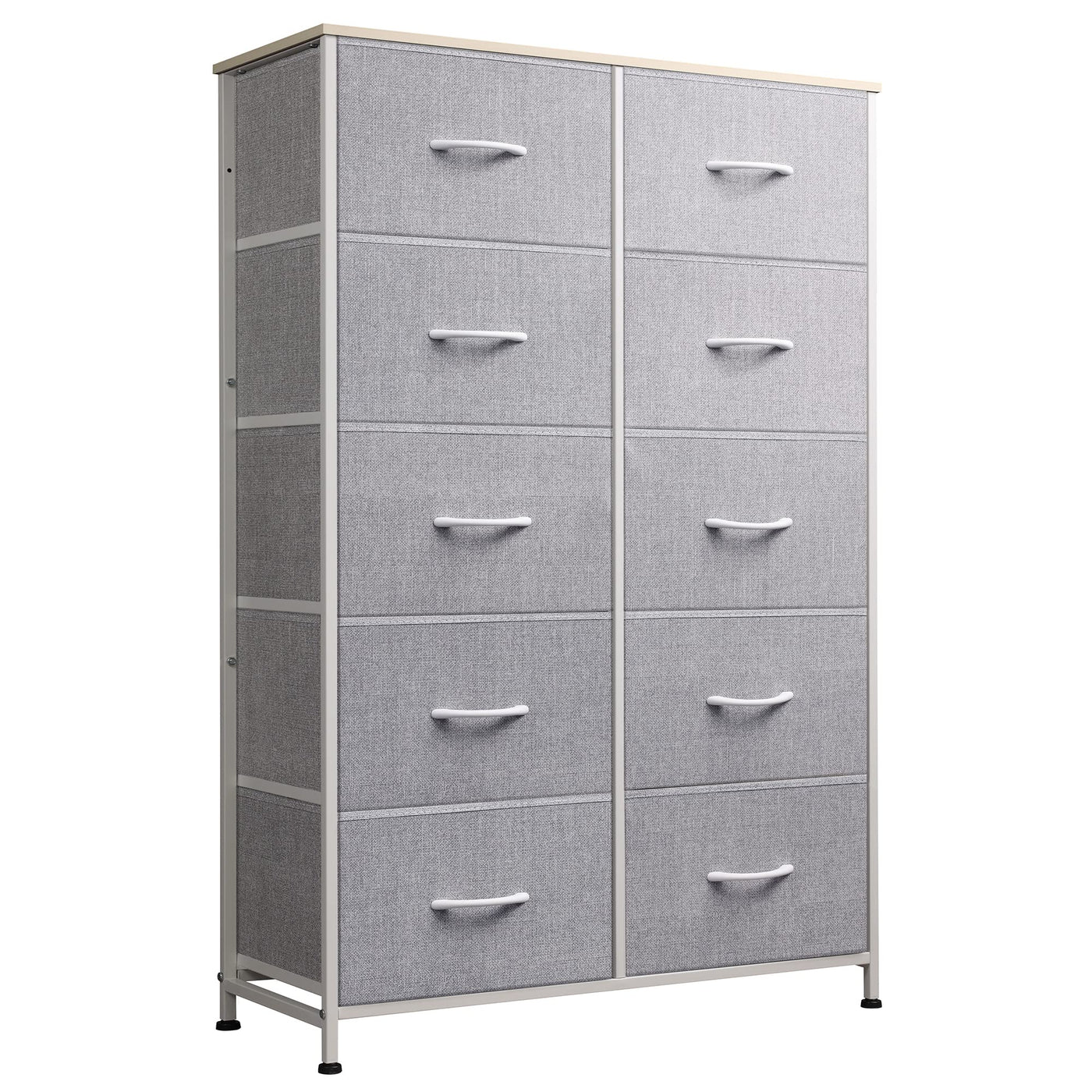 Wlive 10-Drawer Dresser, Fabric Storage Tower For Bedroom, Hallway, Nursery, Closets, Tall Chest Organizer Unit With Textured Print Fabric Bins, Steel Frame, Wood Top, Easy Pull Handle, Light Grey