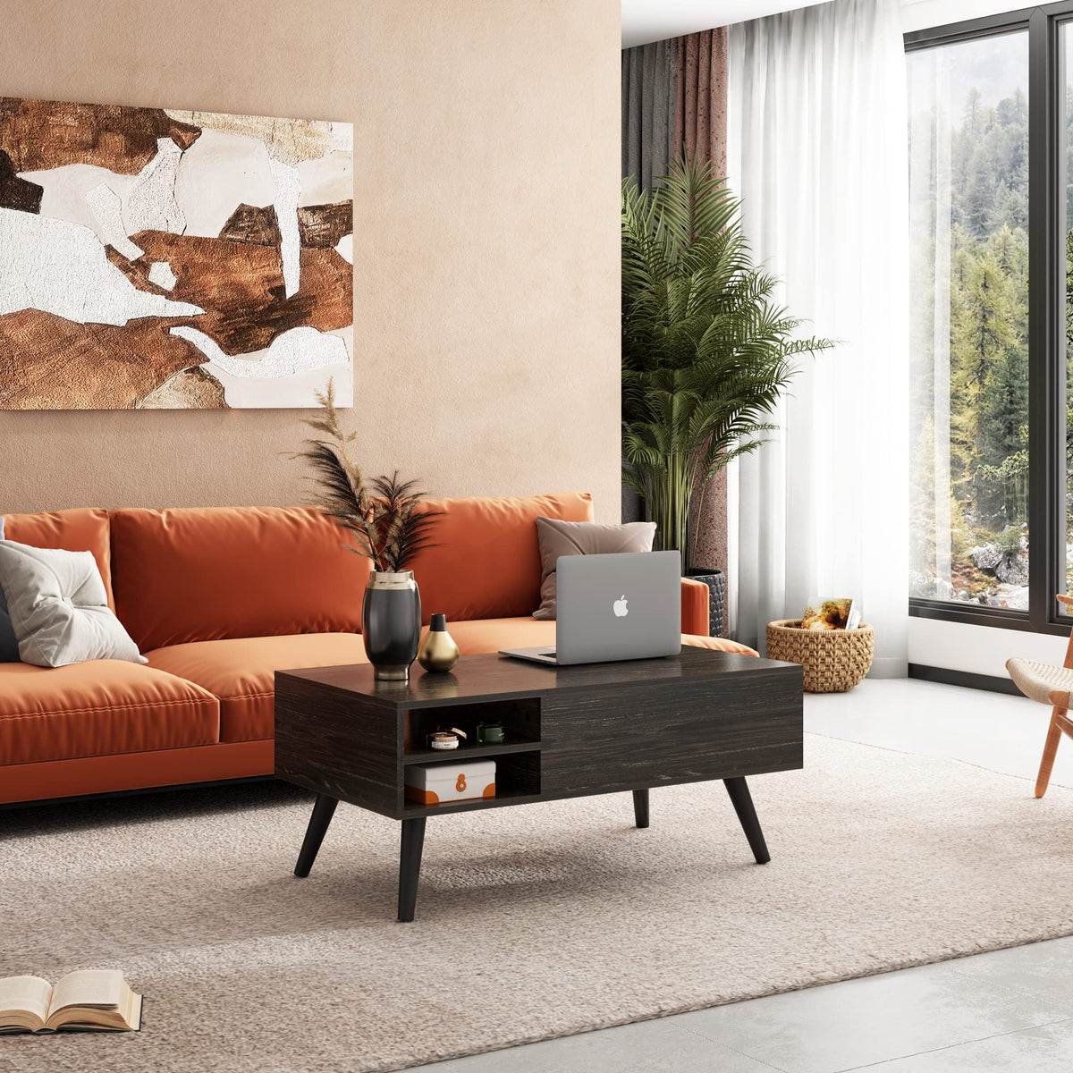 Product Features: * Simple and morden appearance perfectly matches your room style and décor * Lift top design is ideal for working, dining and extra storage in living room or office * Large hidden compartment beneath the tabletop is enough to store your often-used items, keeping them away from dirt * 2 left open shelves offer extra space for magazines, CDs, game controllers and remotes * The tabletop can be easily lifted up or lowered down effortlessly and noiselessly * High quality lift top mechanism makes the tabletop more stable when lifting and lowering without sudden bounce and close * Crafted of water-resistant particle board and durable metal springs, ensure years of use * Easy to assemble with detailed instructions and tools included * Please feel free to contact us for any question, we will help you solve it quickly