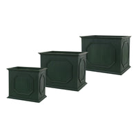 Planter (Set of 3) 13''L x 11.25''H, 15.5''L x 12.25''H, 18''L x 13.25''H Wood Display your plants in style with this beautiful set of Wooden Box Planters. Featuring three assorted sizes, the faux traditional design paired with the trendy green tone is the perfect combination to create a timeless display. The quality wooden composition is sure to last for seasons to come. Complete the look by adding a faux floral arrangement to each box. Measures 13 x 8.25 x 11.25 in.; 15.5 x 10.75 x 12.25 in.; 18 x 13.25 x 13.25 in. Primary Materials: Wood Reccommended for indoor or outdoor covered use only