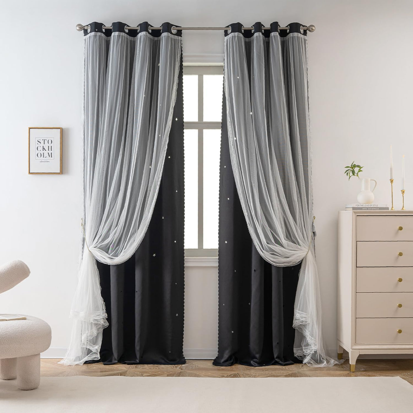 Yancorp Black Curtains For Bedroom Living Room Thermal Insulated Kids Curtain Hollow-Out Star Window Nursery Curtain 63 Inches Length Room Darkening Grommet(Black,52 * 63),1 Panel