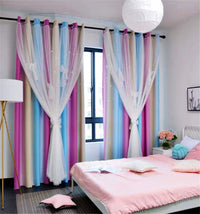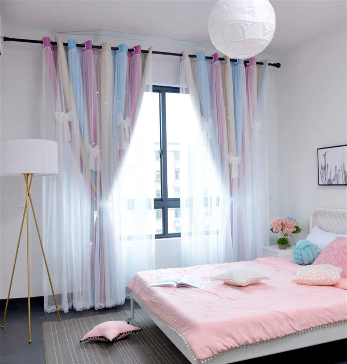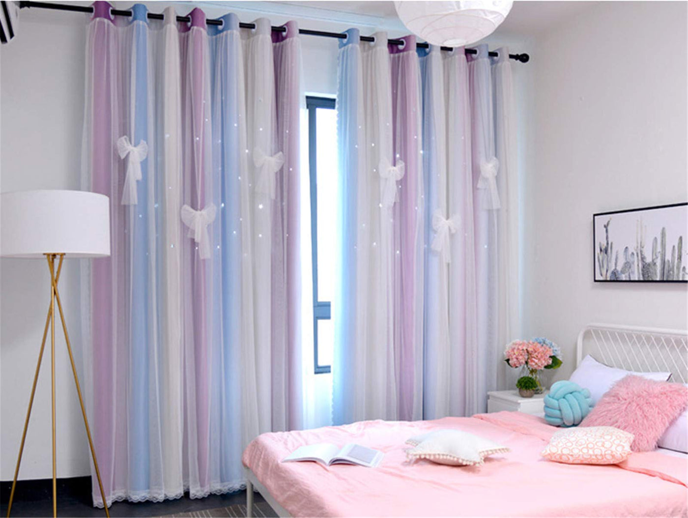 Yancorp Curtains For Girls Bedroom Kids Curtain Hollow-Out Star Window Drapes Curtain 84 Inches Length Room Darkening Grommet 2 Layers,1 Panel (Pink Blue, W52 X L84)