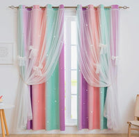 Product Description: This cut-out hollow stars design decorate your windows with a fantastic style. Elegant curtain is perfectly for kids room or any room who prefers a dreamy princess look. Your will enjoy these twinkle twinkle stars on the window. Curtains constructed with 5 layers, with Star Cut-Outs the inner layer and tulle lace outer layer. We use high-tech hollow technology cut edges and corners, leaving the star shape intact and clearer. When the sun shines in, stars will emit light, through the screen, forming a dream starry sky.
