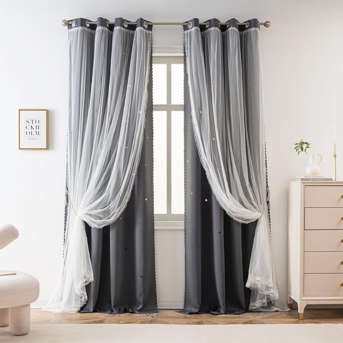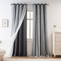Yancorp Grey Curtains For Bedroom Living Room Thermal Insulated Kids Curtain Hollow-Out Star Window Nursery Curtain 96 Inches Length Room Darkening Grommet(Grey,52 * 96),1 Panel