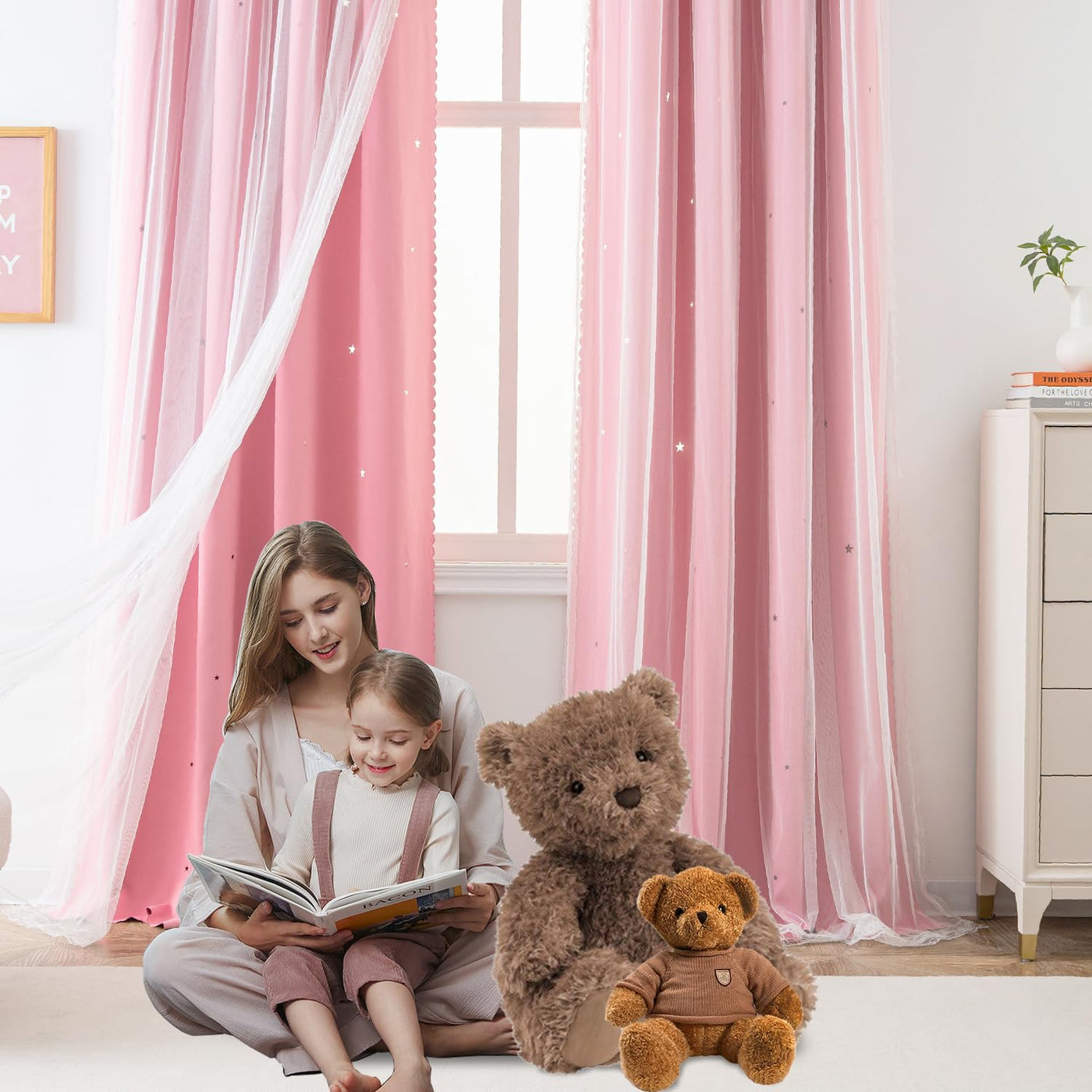 Yancorp Pink Curtains For Bedroom Living Room Thermal Insulated Kids Curtain Hollow-Out Star Window Nursery Curtain 84 Inches Length Room Darkening Grommet(Pink,52 * 84),1 Panel