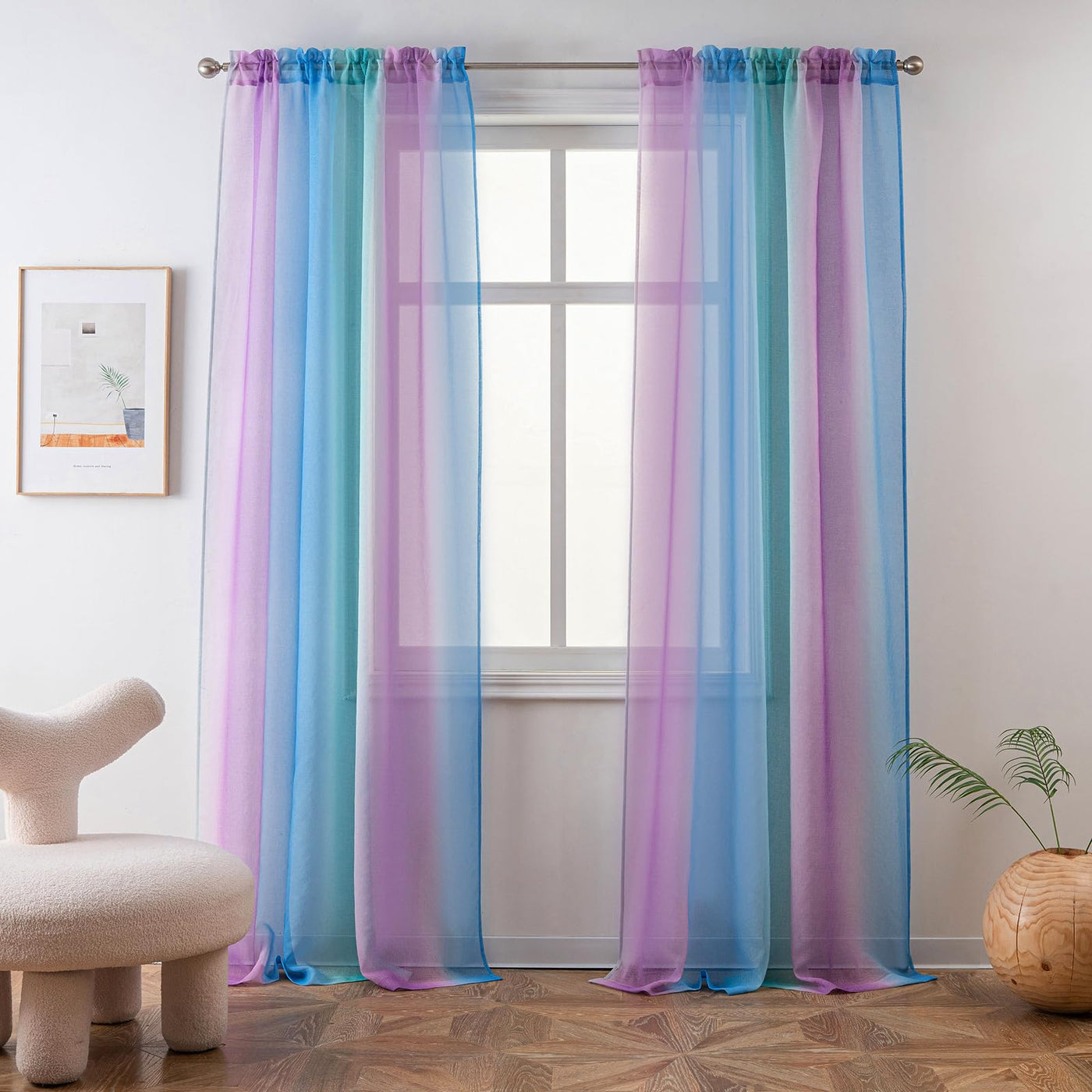Q: Can these curtains provide privacy while still allowing light in?A: Yes, the rainbow sheer curtains have a moderate light transmission rate that effectively filters glare while protecting your privacy during the day.