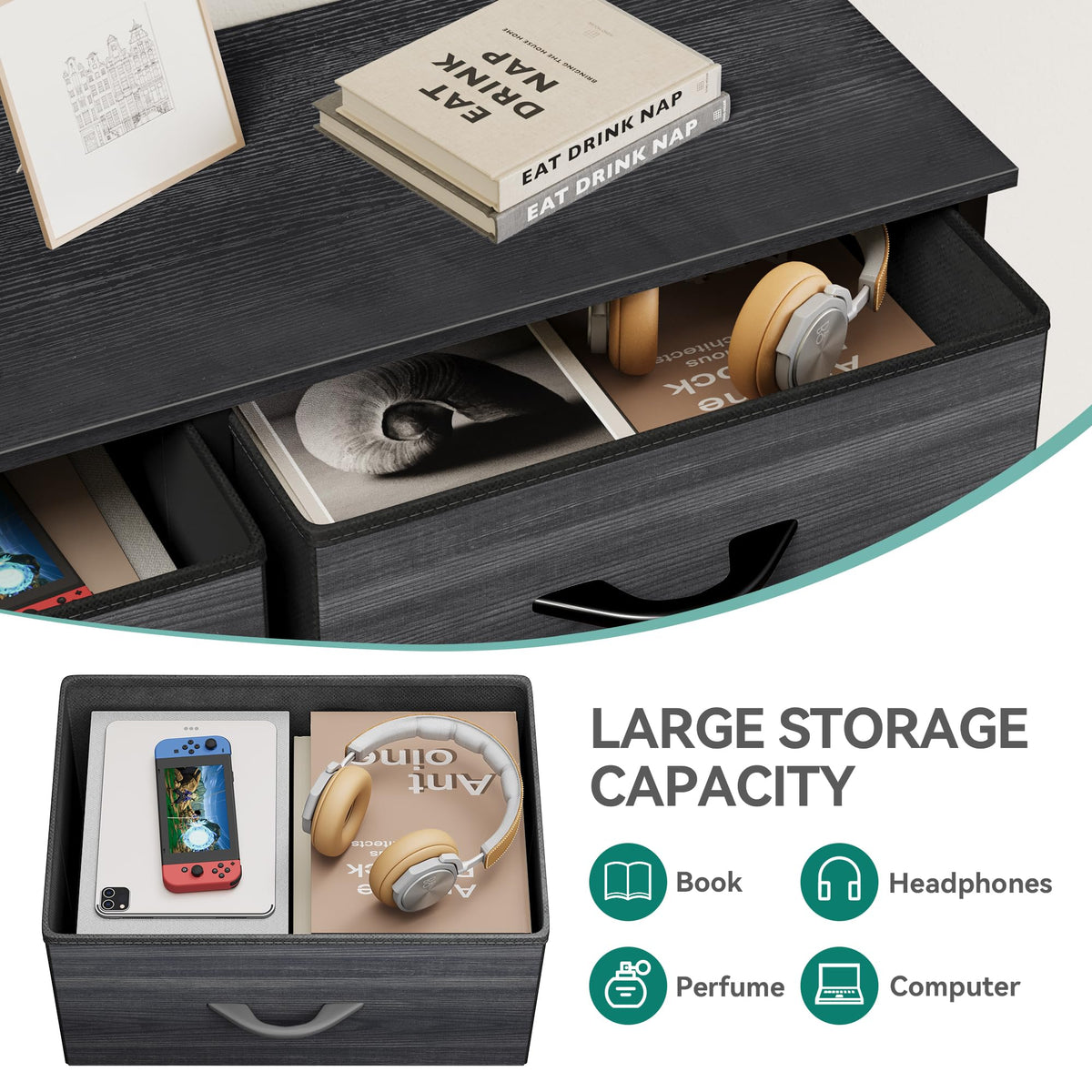 Product description:YITAHOME- PURE & EASYA multi-functional tall dresser for every household-Provides additional storage space in your living room or bedroom, so your home becomes more comfortable and organized.-Organize everything in your closet - clothes, toys, belts, socks, hats, and gloves. Get rid of those messy piles on your floor!Simplify your lifestyleTired of messy rooms? Fed up with searching for something that’s “somewhere around here?”. Organize your home with our premium storage drawer.Use it to teach your children how to organize their things. You can always trust YITAHOME to provide you a relaxing and uncluttered life.Specifications? Overall dimensions: 33.9' L x 11.8' W x 47.2' H; Drawer dimensions: 15.4'' L x 11.2'' W x 8.7'' H? Material: Iron frame + cationic polyester fabric + non-woven synthetic fabric + MDF board + cardboard + plastic handles? Product care: Wipe clean with a wet cloth and let it dryPackage contains10 dressers & chests of drawersAssembly hardware kit