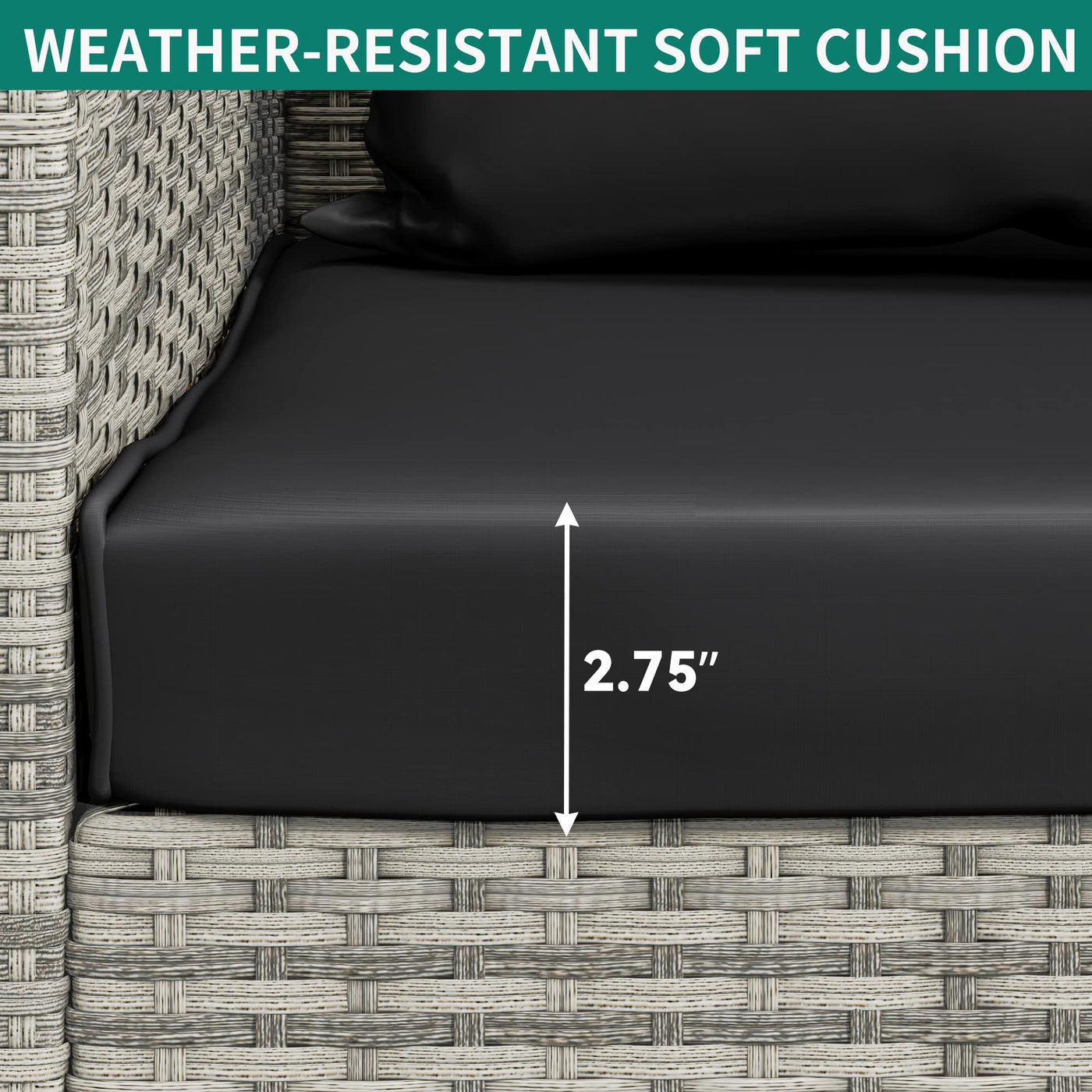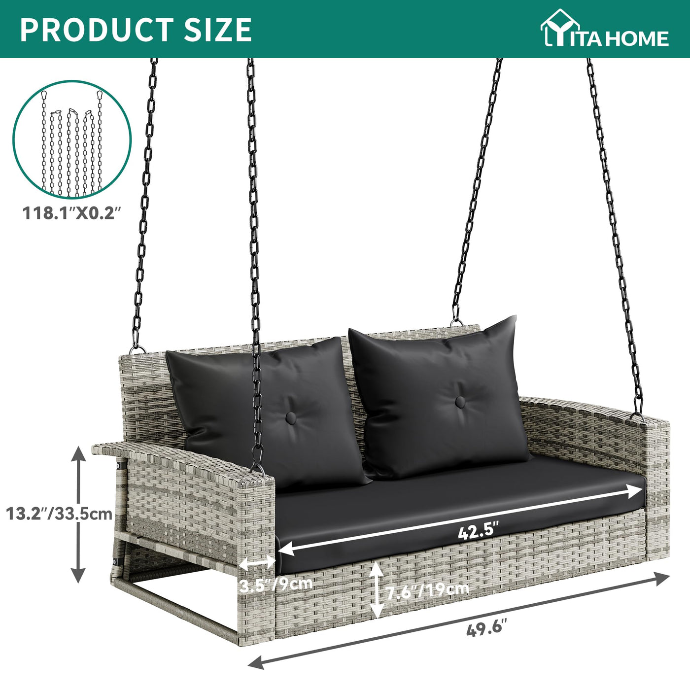 Yitahome 2-Seats Wicker Hanging Porch Swing Chair Outdoor Gray Rattan Patio Swing Lounge W/ 2 Back Cushions Capacity 530Lbs For Garden, Balcony, Living Room, Gray Rattan Black Cushion