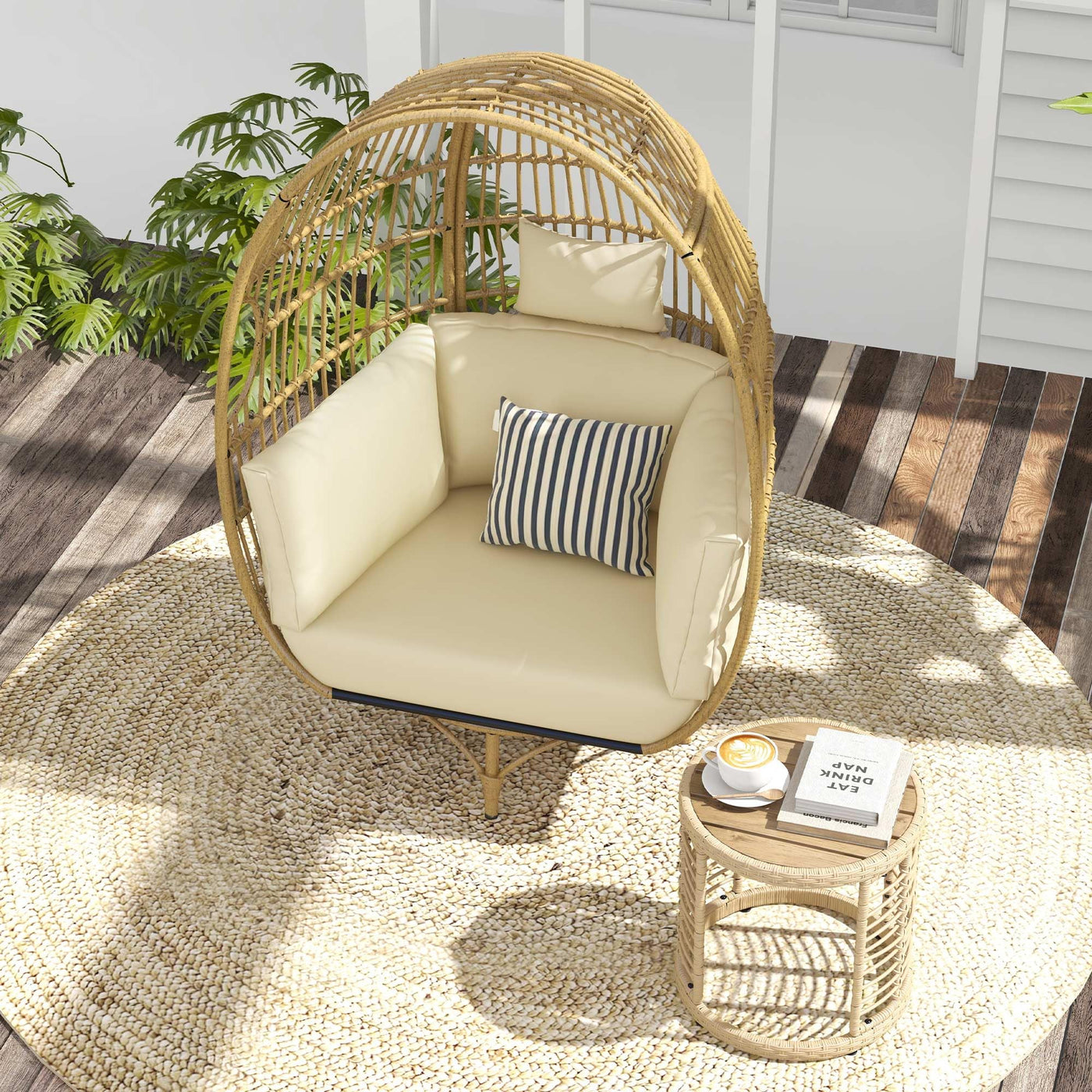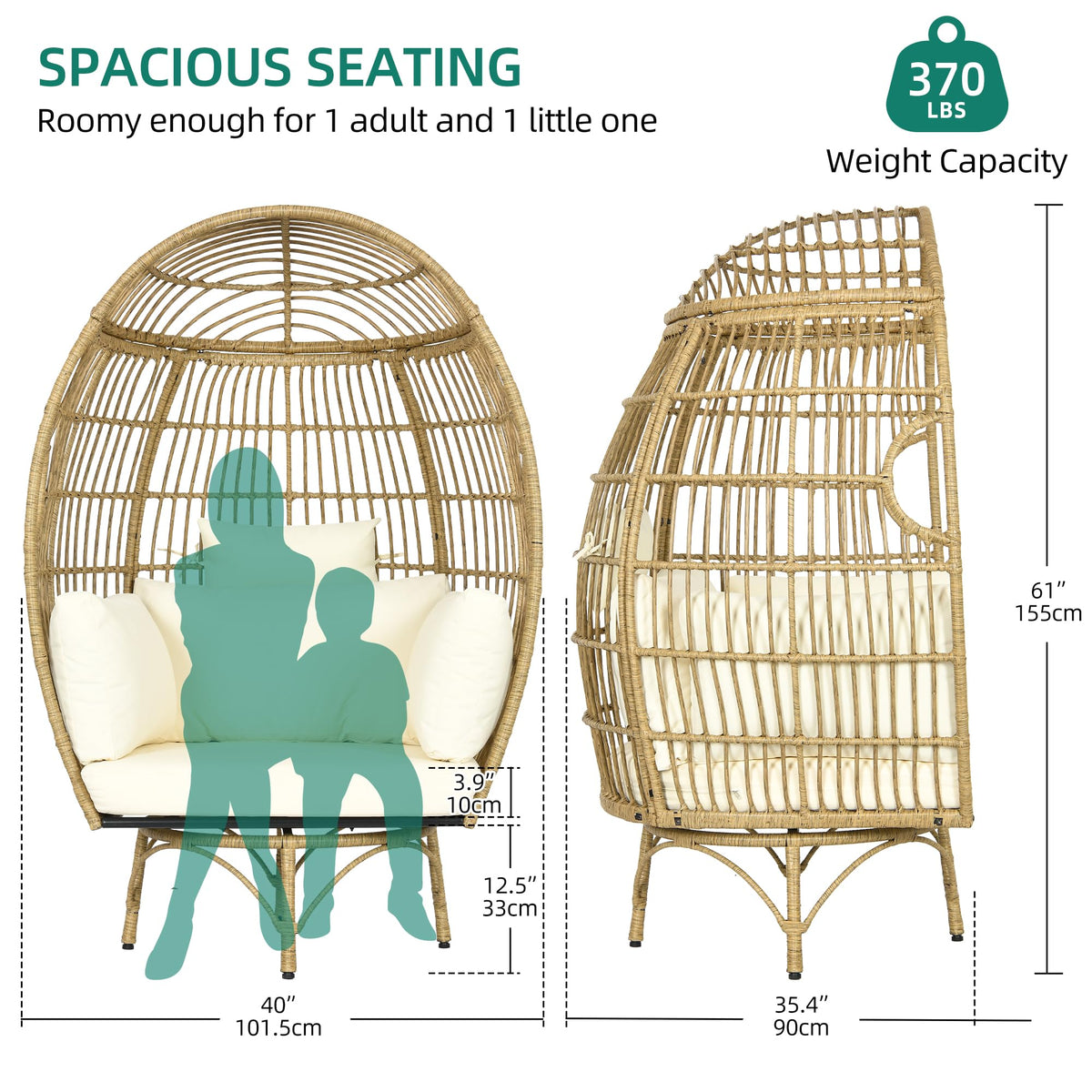 Steps to Ultimate Relaxation: Luxuriate in unrivaled comfort with the deluxe 4-inch padded cushions, lumbar support, and headrest pillows of this oversized basket chair. Whether you crave a cozy reading nook or a spot to unwind, this egg chair offers an elite sanctuary to stretch out and decompress at your leisure. | Seamless 360-Degree Rotation for Maximum Convenience: Effortlessly swivel around and change directions with ease using the one-of-a-kind rotating feature of this egg chair. Revel in the freedom to shift views or engage in conversations without physically relocating the chair itself. | Built to Brave the Elements: Crafted with durable all-weather wicker rattan, this patio egg chair is designed to withstand even the harshest weather conditions. Its robust structure guarantees enduring performance, regardless of the elements. In addition, the water-resistant cushion fabric allows for hassle-free cleaning, even in the event of spills. | Sturdy & Safe: Fashioned with a sturdy black powder-coated frame and a smooth rocker base, this egg chair offers unwavering stability with a weight capacity of up to 400lbs. The incorporation of dual armrests enhances safety and security during your swivel chair experiences. | Sophisticated Indoors & Outdoors: YITAHOME egg chairs transcend conventional outdoor furniture. While they are perfect for outdoor areas like gardens, porches, patios, and pools, they effortlessly infuse a relaxed bohemian vibe into your living room or bedroom. These contemporary pieces exude versatile elegance and seamlessly elevate the aesthetics of different indoor environments.