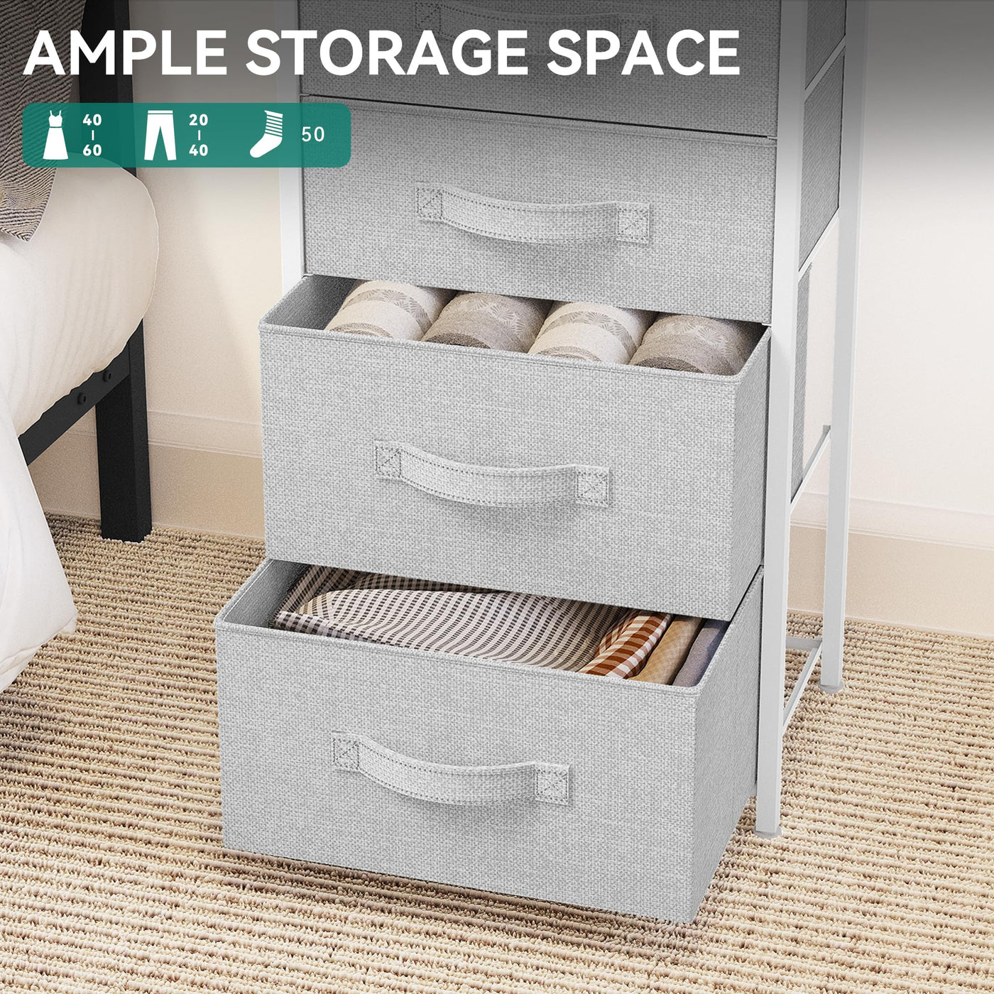 VERSATILE BEDROOM DRESSER- YITAHOME fabric dresser represents a clean expression that fits right into your bedroom, living room, hallway, entryway, closet, playrooms | ROOMY STORAGE SPACE- This 5 drawer dresser can stash dresses, socks, pants, shirts, etc.; Sizeable top grants all the surface area you need to display framed photos, lamps and potted plants | STURDY DRAWER ORGANIZER- Premium MDF wooden top and reliable metal frame lend immense support & extend shelf life; 4 adjustable plastic legs are for scratch protection and stability on uneven ground | PORTABLE STORAGE UNIT- This dresser has 5 foldable deep drawers, with easy-to-pull plastic handles rounding out the design; High quality non-woven synthetic fabric is easy to care | SAFETY FIRST- Overall size: 17.7' L x 11.7' W x 37.2' H; Drawer size: 15.7 'L x 11' W x 8.3 'H / 15.7 'L' x 11 'W x 5.3' H; It’s a breeze to assemble the chests of drawers with instructions included; Recommended to anchor the small dresser to the wall for anti-tipping safety