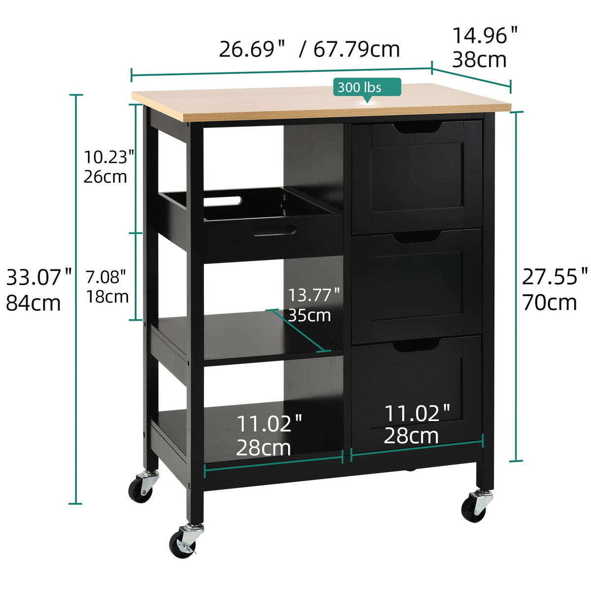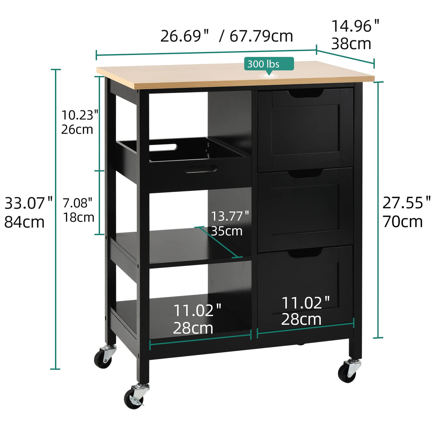 STYLISH MOBILE CART: YITAHOME kitchen serving cart offers extra storage space to hold kitchen utensils, prepared food; you can also easily move around the kitchen, dining room or garden to enjoy mealtime or teatime with family & friends. | STABLE STRUCTURE: Thick pine wood top on 4 sturdy legs & P2 grade MDF can support weight up to 300lbs without shaking; painted in smooth food-safe finish makes them waterproof and scratch-proof for easy cleaning and food preparation. | LARGE STORAGE SPACE: The wide top of this rolling storage cabinet can be used as cutting board or stand to put a microwave oven, roaster; 3 open shelves & drawers to classify cutlery, pots, pans & other essentials to keep your culinary space neat & clean. | EASY TO MOVE: 360° industrial wheels are easy to move anywhere needed and can bear heavy loads without breaking, sturdier than other plastics; 2 of them are lockable to ensure high stability when stopped. | QUICK ASSEMBLY & AFTER-SALE SERVICE: Comes with clear instruction & tools so that you will never get stuck in assembling; we strive to provide customers with great products and services; Any problem will be solved promptly to your satisfaction.
