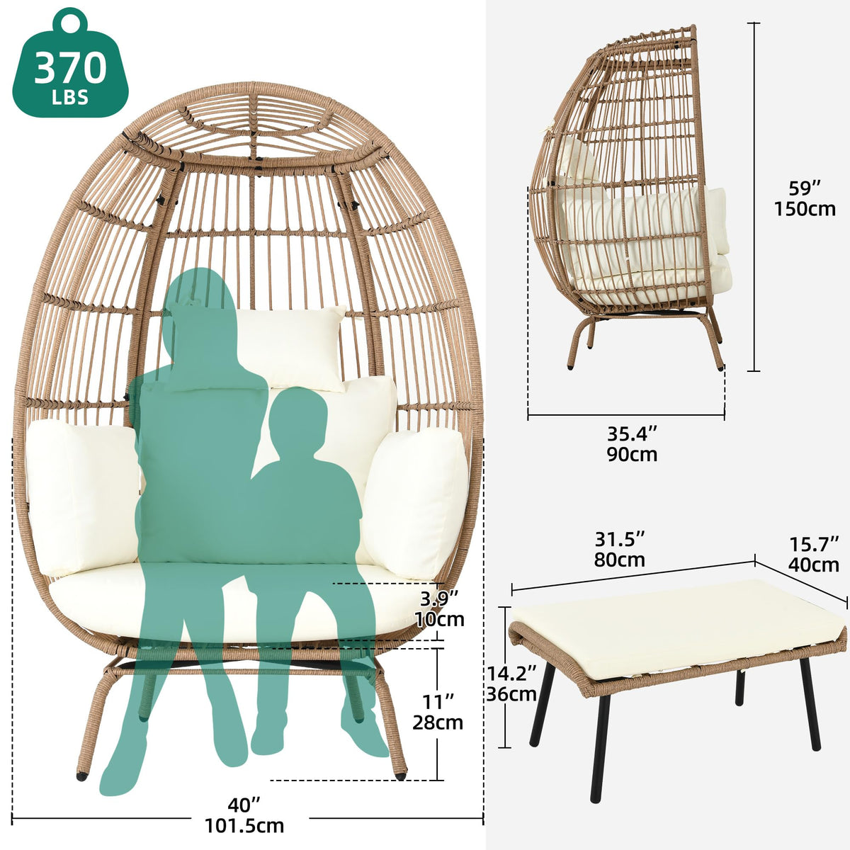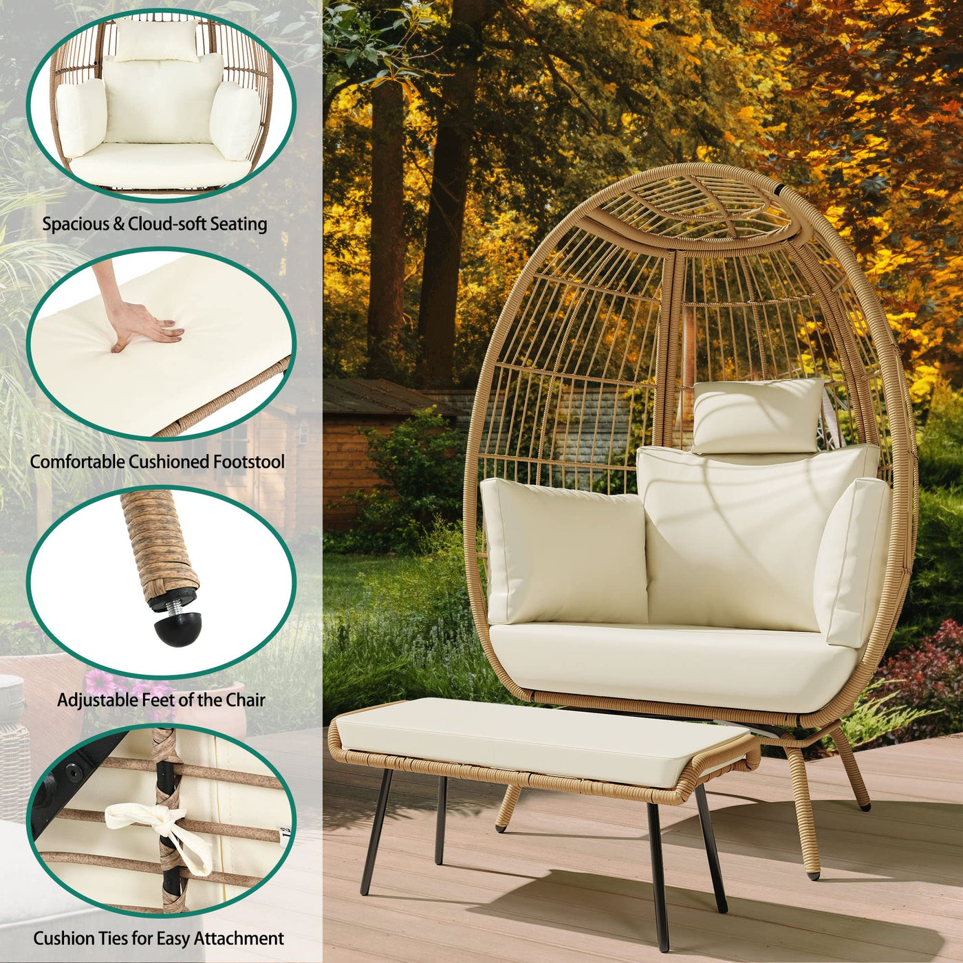 Yitahome Wicker Outdoor Egg Chair With Footrest Patio Oversized Lounger Chair With Ottoman, Cushions, Outdoor Indoor Basket Chair - Beige