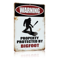 Yniaun Decor Funny Sasquatch Gift Metal Sign Warning Property Protected By Bigfoot Gifts Tin Signs Vintage Garage Garden Forest