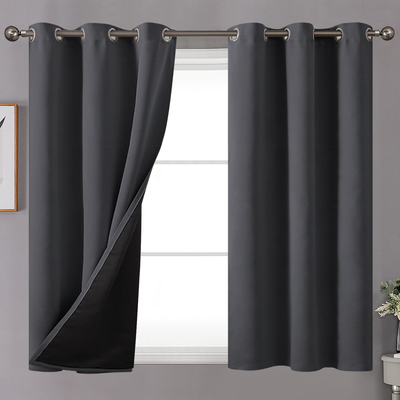 Youngstex 100% Blackout Curtains 54 Inch Long For Bedroom, Double Layer Full Light Blocking Thermal Insulated Window Drapes With