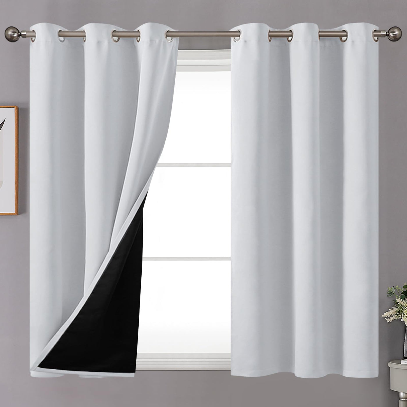 Youngstex 100% Blackout Curtains 54 Inches Length For Bedroom, Double Layer Full Light Blocking Thermal Insulated Window Drapes