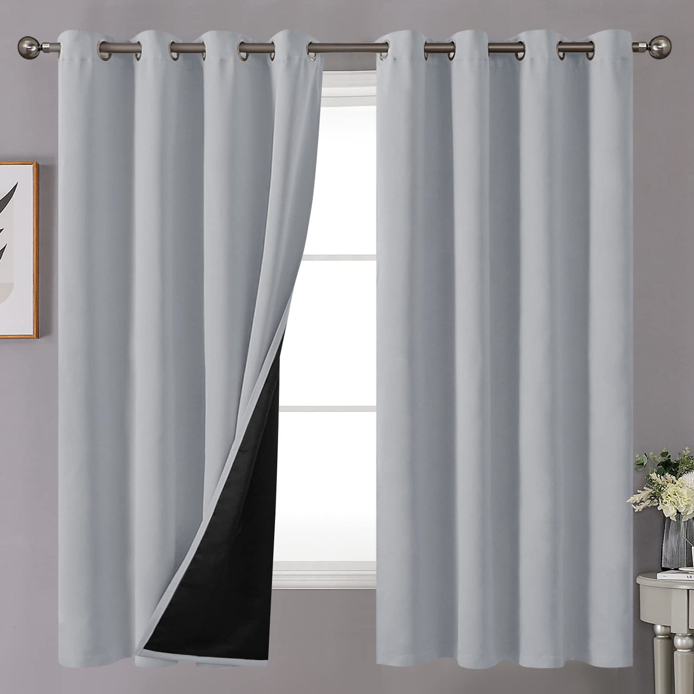 Youngstex 100% Blackout Curtains For Bedroom With Double Layer, Grommet Thermal Insulated Total Room Darkening Light Grey Drapes