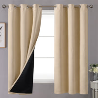 Youngstex Beige 100% Blackout Curtains 63 Inches Length For Bedroom, Double Layer Full Room Darkening Curtains Thermal Blackout