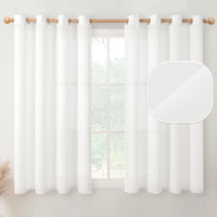 Youngstex White Linen Sheer Curtains 45 Inch Length For Short Windows Grommet Textured Drapes Lightweight For Bedroom Kitchen Ba