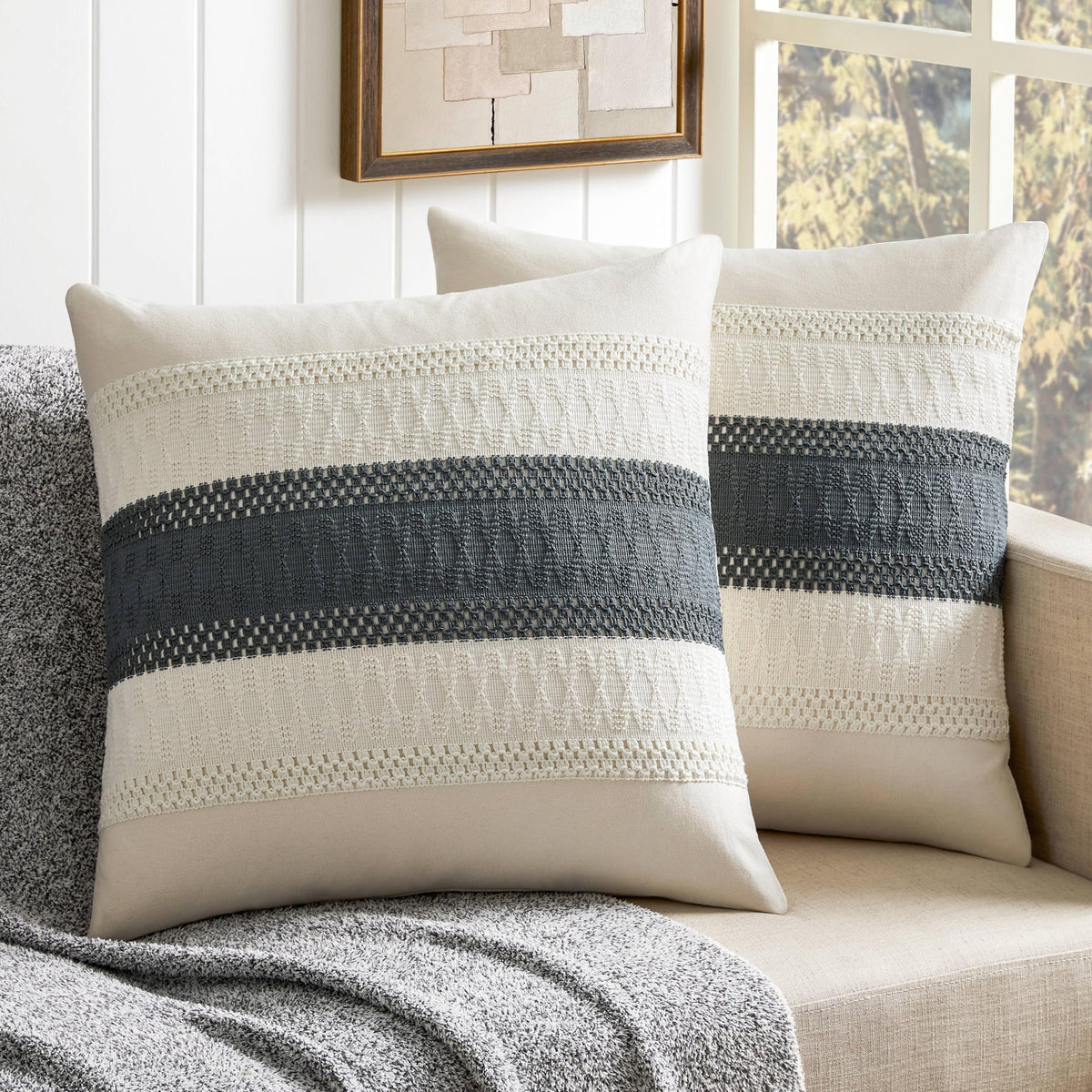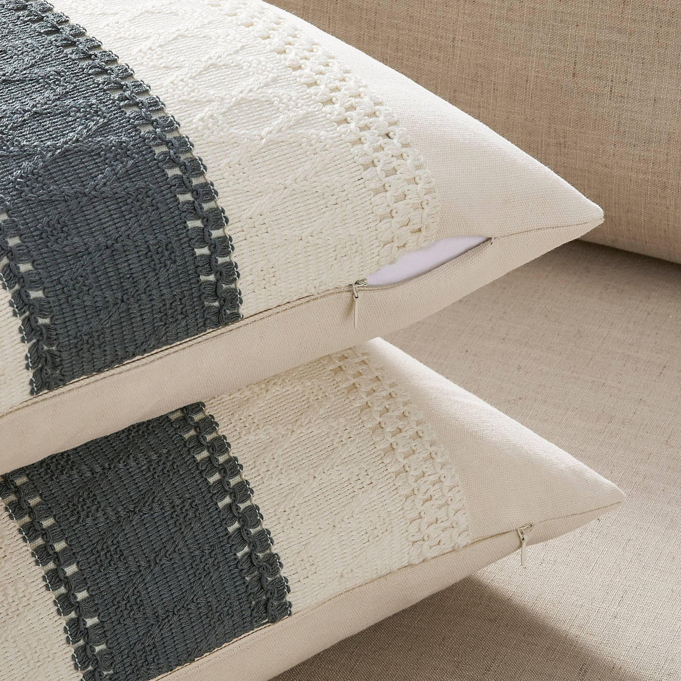 Zeemart 2 Packs Cotton Boho Throw Pillow Covers 22X22 Inch Contrast/Charcoal, Soft Farmhouse Decorative Couch Pillow Cases Dark Grey Cushion Covers For Sofa Bed Living Room Home Decor