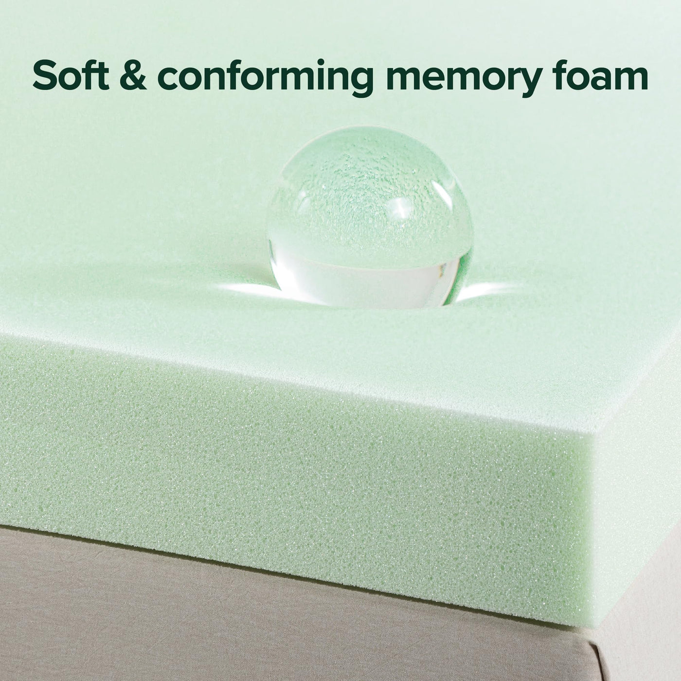 Green tea is no longer just for your teacup. We harnessed the natural abilities of this healthy ingredient by adding it to your bed, and the Green Tea Memory Foam Mattress Topper was born. This mattress topper ships in our compact WonderBox™ for a reduced carbon footprint and even easier maneuverability. This mattress topper is made entirely of our proprietary green tea and charcoal infused memory foam, which works wonders to eliminate moisture and odor around the clock. In addition to this undeniable freshness, its soft and conforming memory foam creates a custom fit for your body when you lay down. This means your joints and spine are supported, never strained, and you wake up free of aches and pains. And like all of our toppers and mattresses, it’s compressed and rolled up in a box that arrives at your doorstep before you know it, 5-year warranty included and all. This topper is sure to provide you with instant freshness and pressure-relieving softness for your existing mattress—an amazing value at an affordable price!