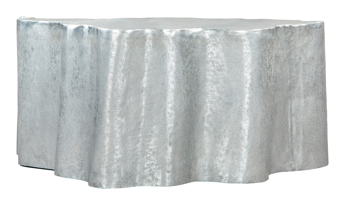 The Kortha Coffee Table has an alumnium body. This table makes the organic look modern and boho chic. It looks great in any space, hospitality of residential.