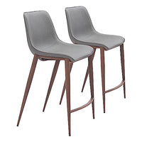 High Design Meets Every Day Casual. This Handsome Counter Stool With Its Slim Profile Pulls Up Perfectly To The Bar. Its Super Comfortable Curved Seat Is Covered In Gray Faux Leather With Dramatic Stitching. Matte Brown Faux Wood Legs Are Complete With Protective Plastic Feet To Keep Your Floors Scratch-Free.