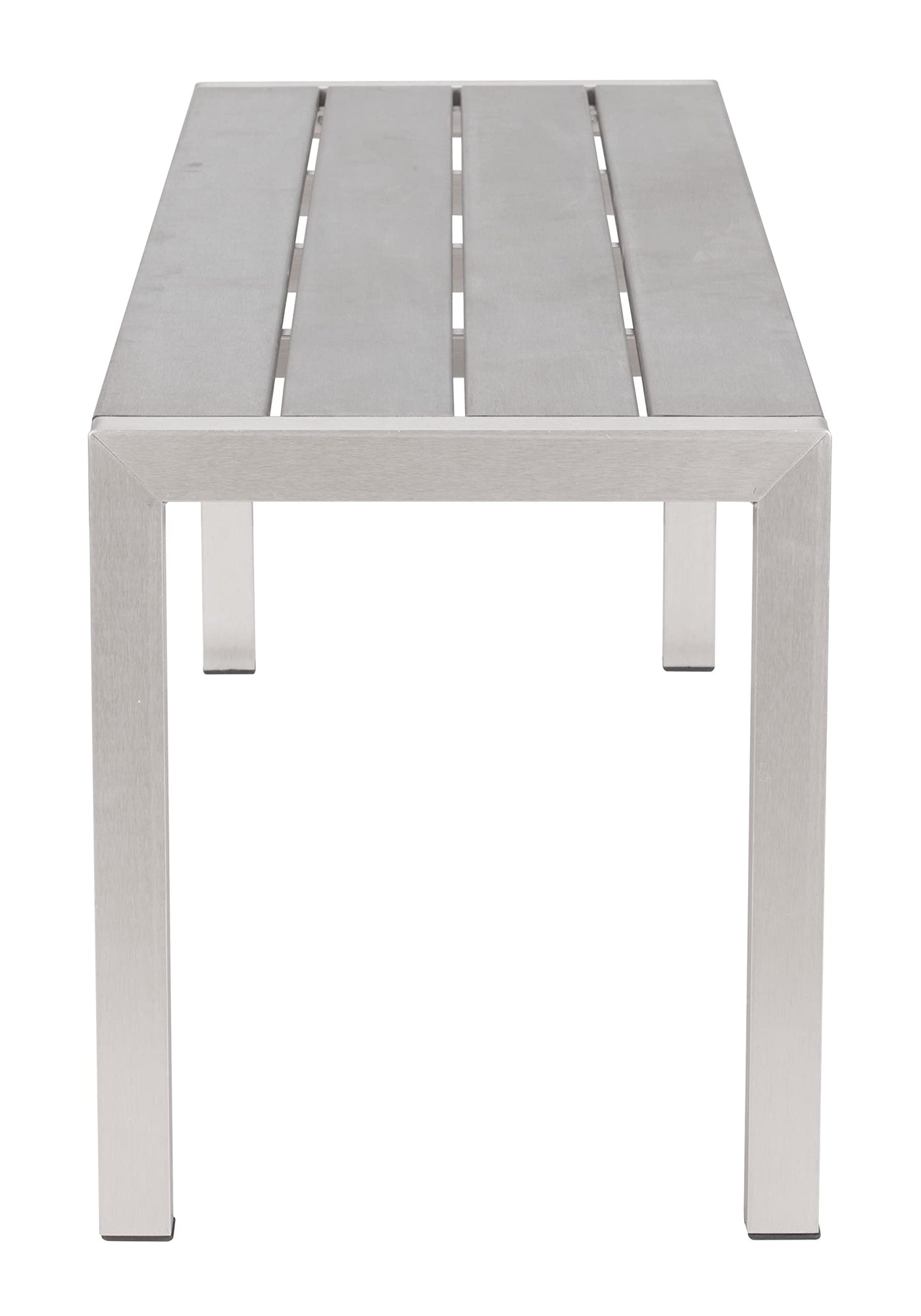 Sturdy elegance makes the Metropolitan Bench a backyard favorite. Made from brushed aluminum and a sturdy polyurethane simulated wood top. May well become an outdoor family heirloom.