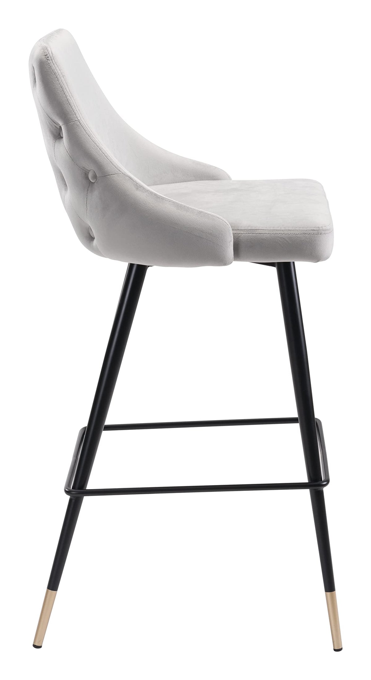 If fashion is your passion, then this bar chair is for you. Make a statement around your kitchen island or in your bar area. Its tapered back with button tufting is easy on the eyes and gorgeous from every angle. Support slats provide a comfortable footrest while seated. Slim pencil legs end in brushed brass, giving it an elegant finish.
