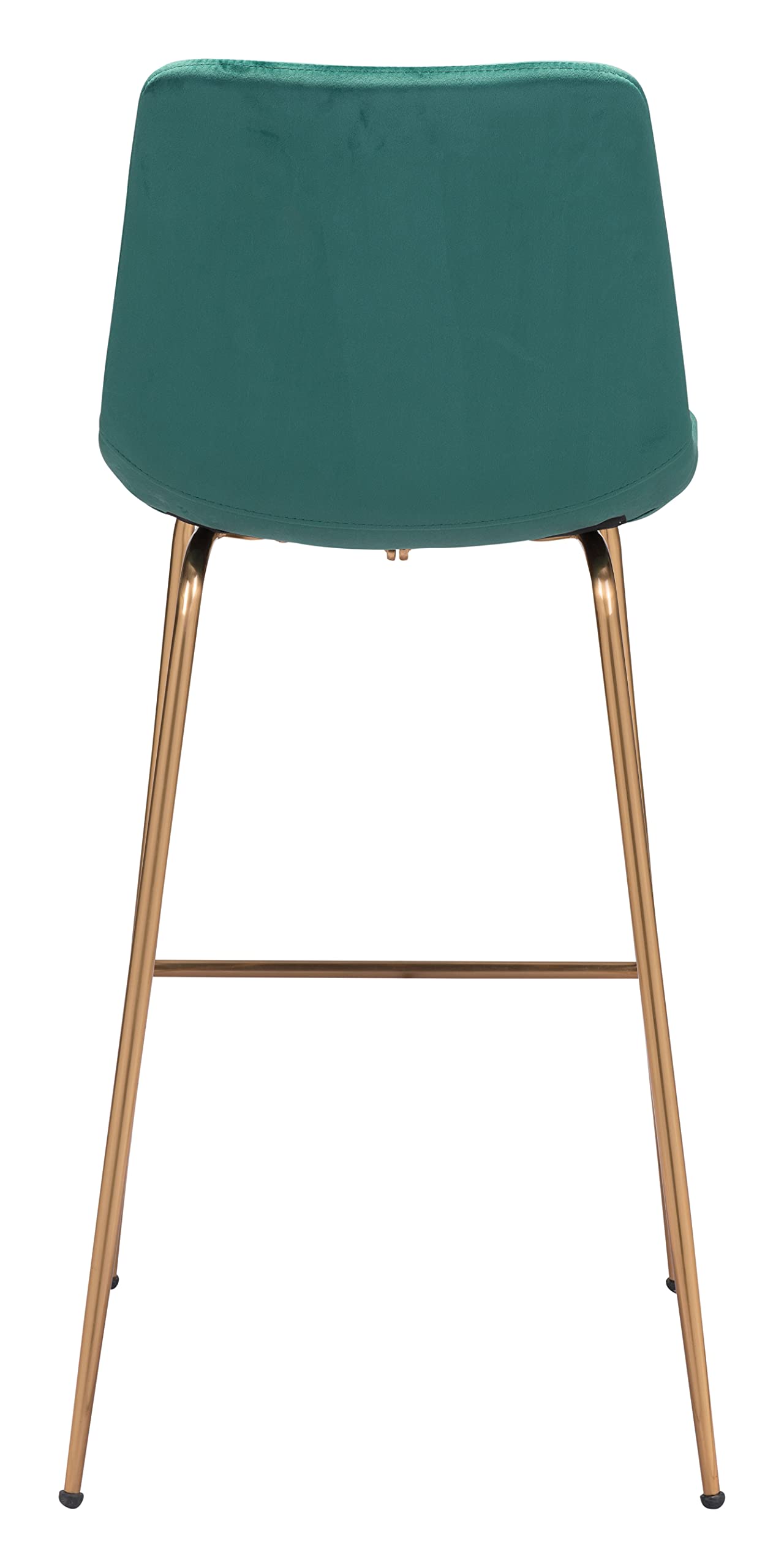 The Tony Bar Chair has glam and maximalist design and looks great in any space from modern to boho chic. The solid steel frame is electroplated with a gold finish and the firm seat and back are covered in a smooth velvet polyester fabric. This bar chair fits great in any home kitchen or bar as well as any hospitality setting like a restaurant.