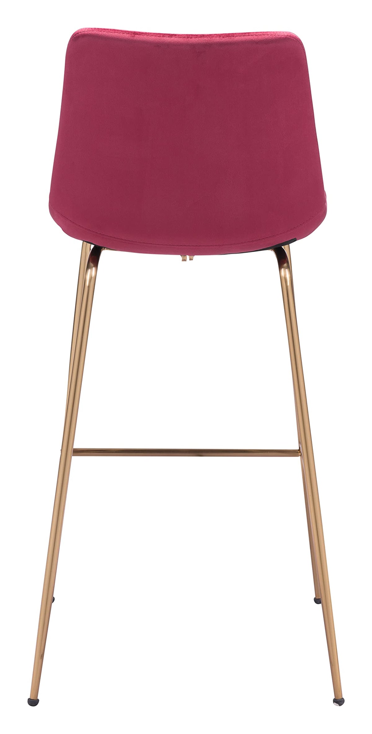 The Tony Bar Chair has glam and maximalist design and looks great in any space from modern to boho chic. The solid steel frame is electroplated with a gold finish and the firm seat and back are covered in a smooth velvet polyester fabric. This bar chair fits great in any home kitchen or bar as well as any hospitality setting like a restaurant.